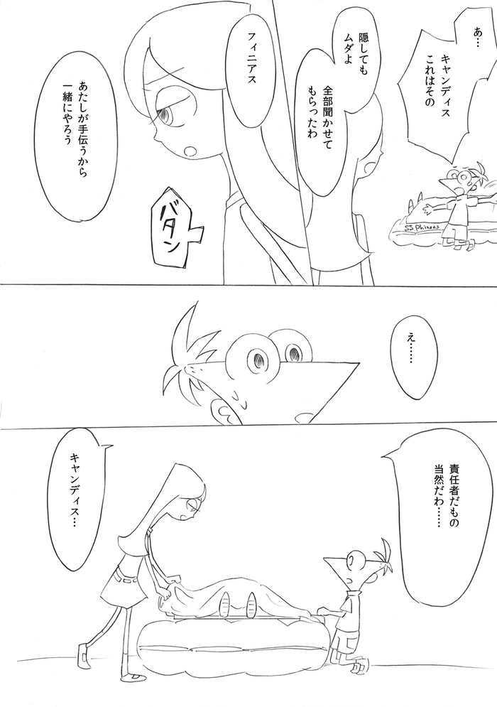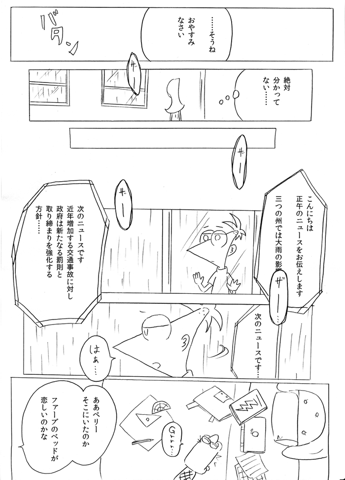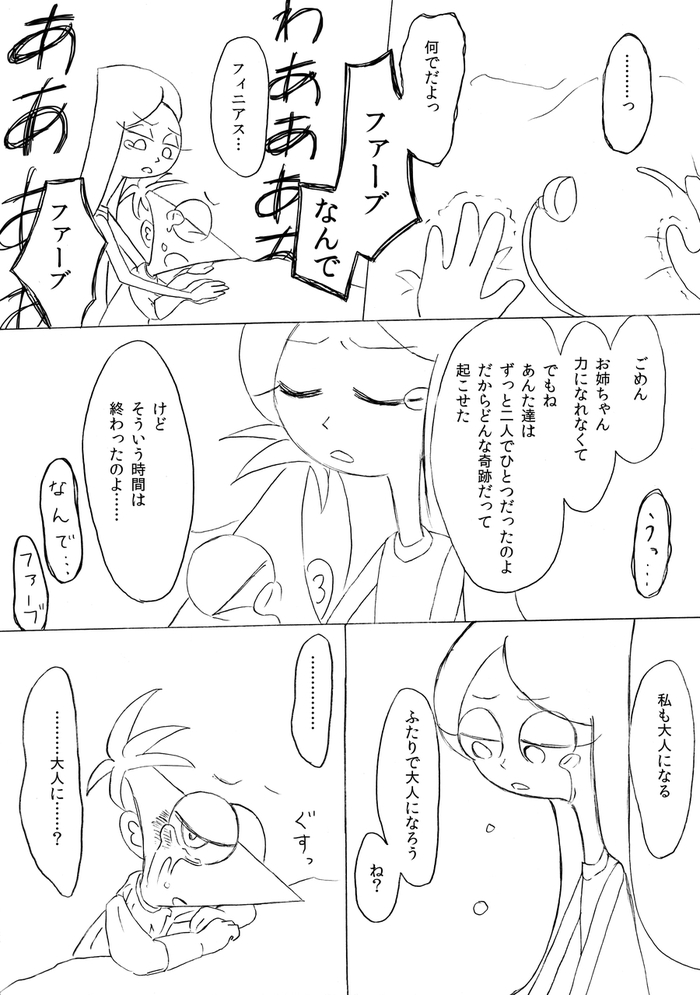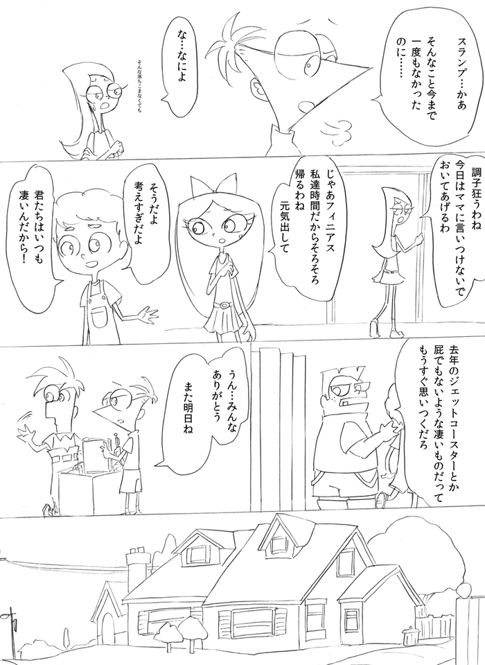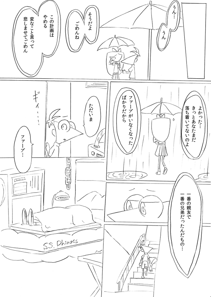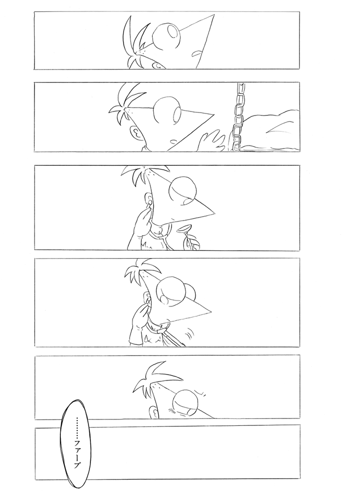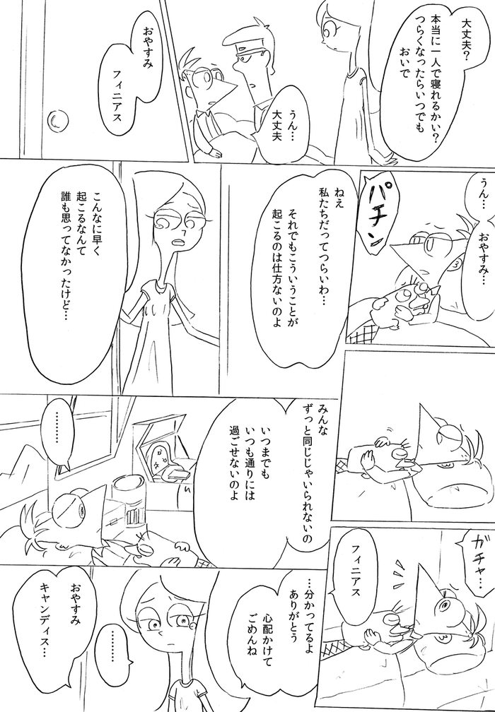 (最終ページ後、フィニアスが目を覚ますとファーブも生きていて予定通り皆で誕生日パーティーをして終了)