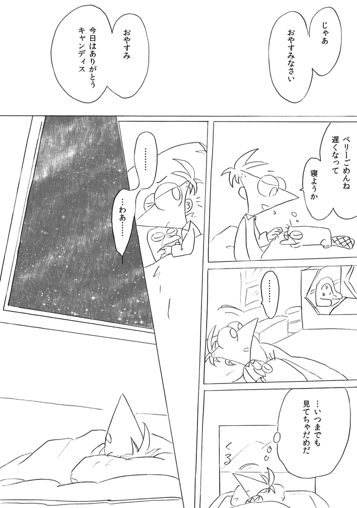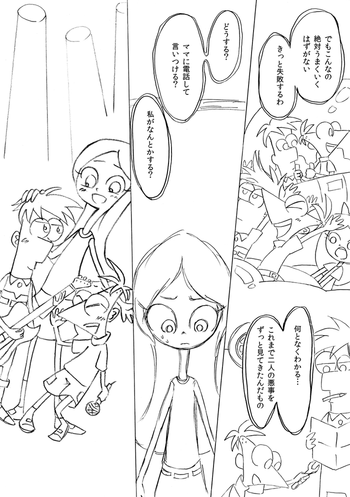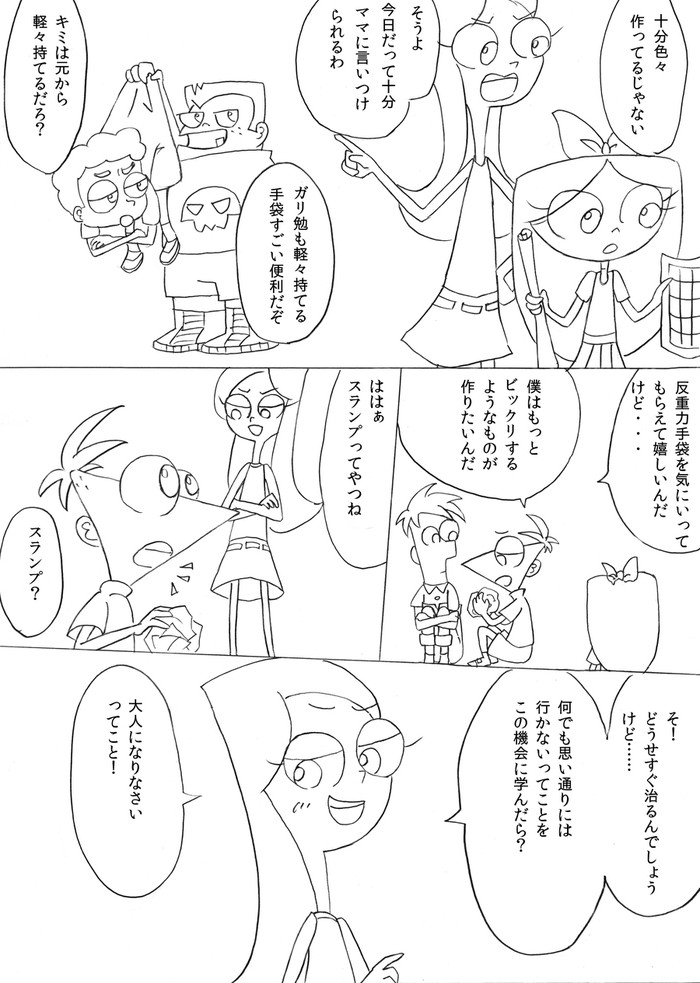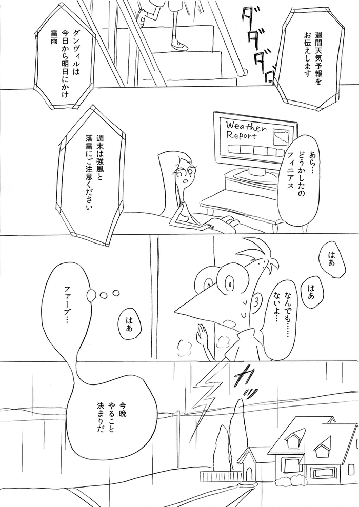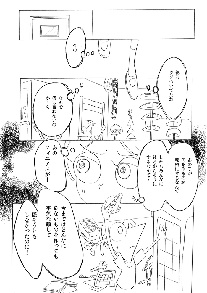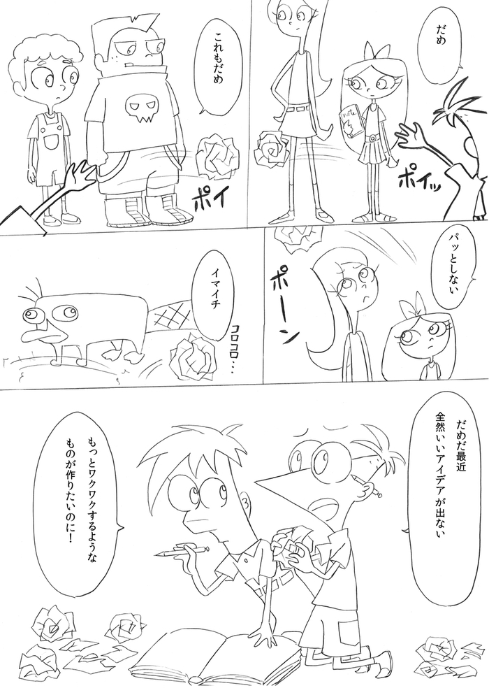 (最終ページ後、フィニアスが目を覚ますとファーブも生きていて予定通り皆で誕生日パーティーをして終了)