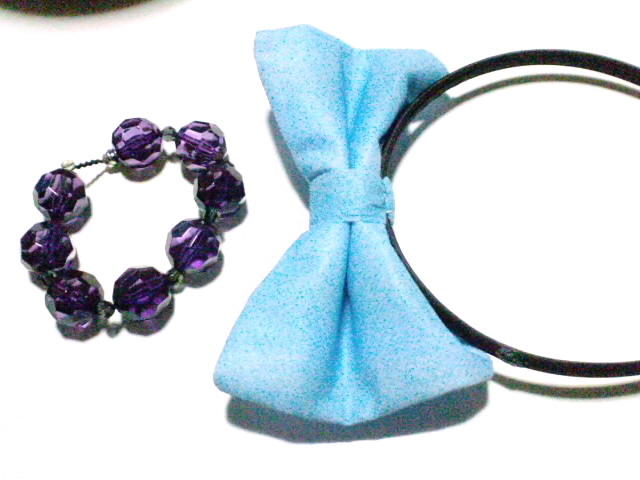 100均のカチューシャの飾りを取り、100均の不織布バッグを切って縫ってリボンを作りました